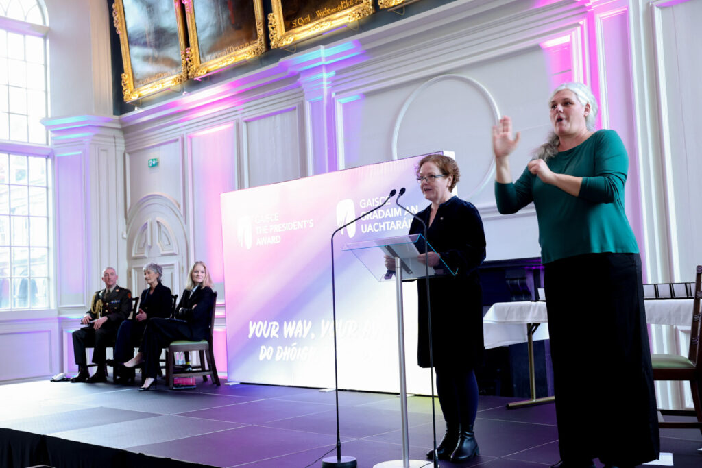 This year’s Awardees have dedicated themselves to a wide range of skills and challenges including learning the harp, carpentry, researching cancer cells, participating in and volunteering at parkrun, volunteering in care homes, conservation initiatives, and sports coaching, finding adventure through hiking Irish and international tracks and trails, as well as exploring their leadership and relationship building abilities across all aspects of their Award experiences. Awardees today come from a diverse group of organisations who deliver the Award including young people from Northern Ireland (through the Joint Award Initiative), Scouting Ireland, Volunteer Centres, Disability Youth Services, Youth Diversion Projects, Youth Justice Services, Third level Institutions, Education Training Boards, Community Services and Schools.